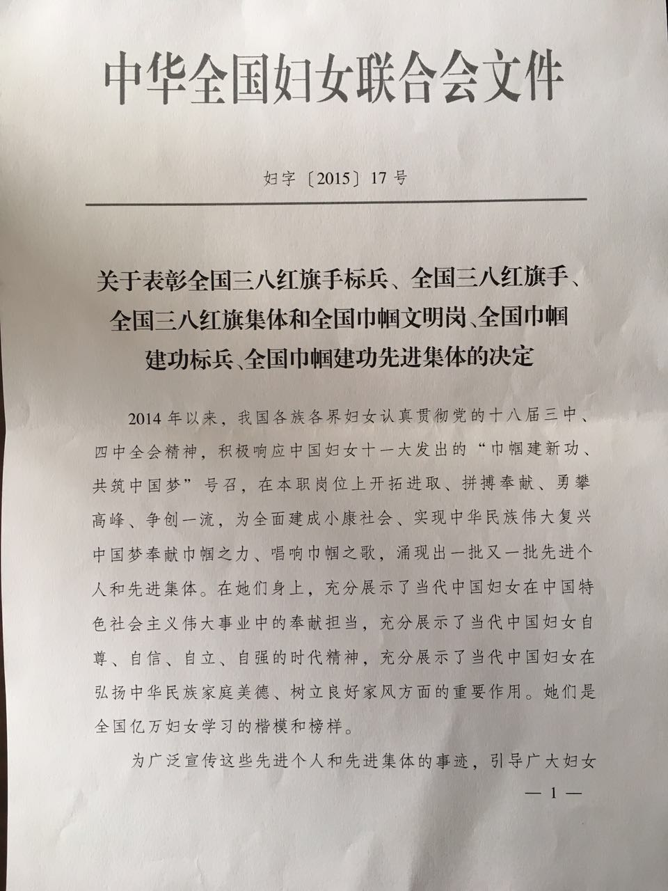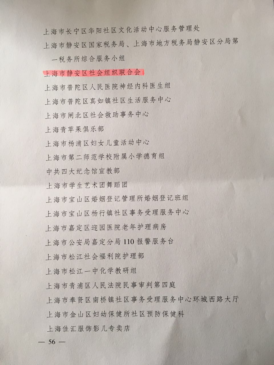 2015年2月初,静安区社会组织联合会荣获全国巾帼文明岗~