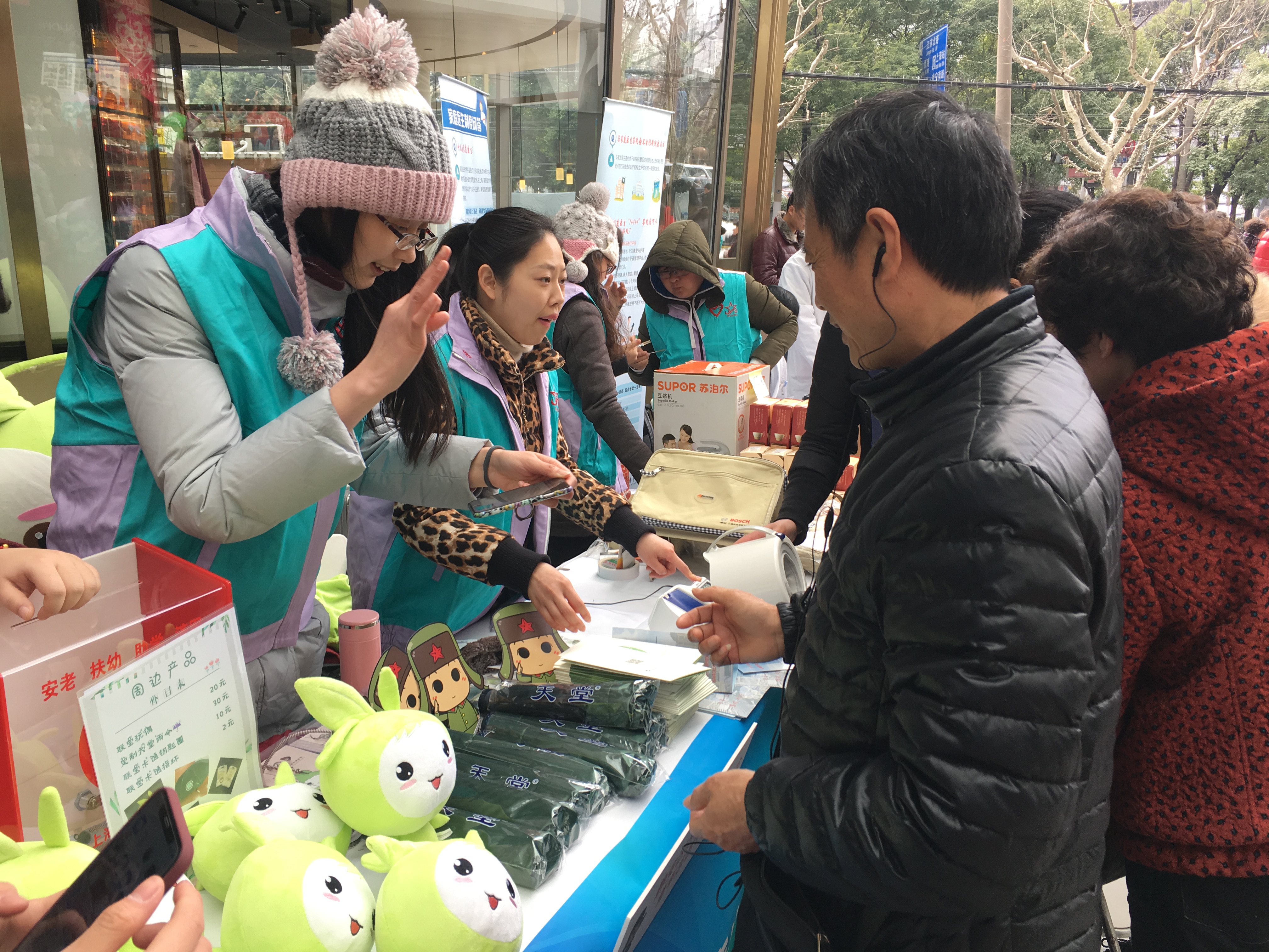 静安区社会组织联合会的志愿者们也积极来到现场,搭建展位,带来区社联会文创周边产品,为周边居民免费测量血压,都收到了赞许和好评,短短2小时的活动中共募集善款382元,全额捐献给青基金,用于静安青少年公益项目,同时为近80位居民免费测量血压。