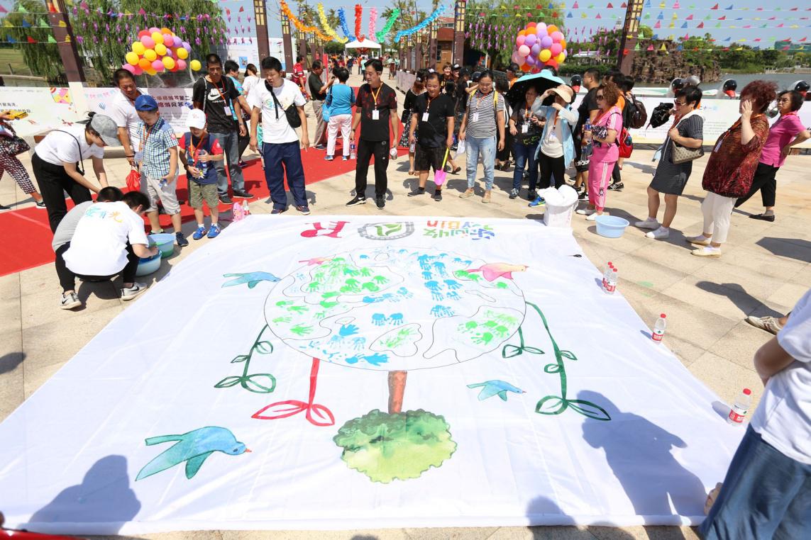 当天正逢中秋佳节,也是2018年上海旅游节第二十一届旅游风筝会,艳阳高照的好天气,公益派组织义工和来往游客们在“地球环保旗”上印下自己的手印,再协力将印满手印的环保旗放飞空中,向大众宣传垃圾分类环保理念,号召更多人加入到支持绿色地球的队伍中来,创造一个美丽的地球村。