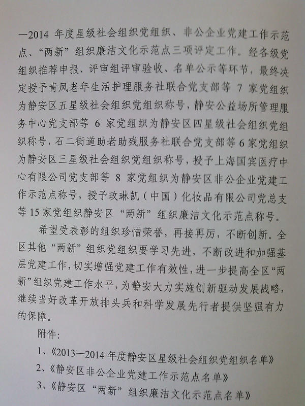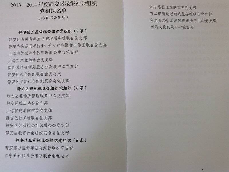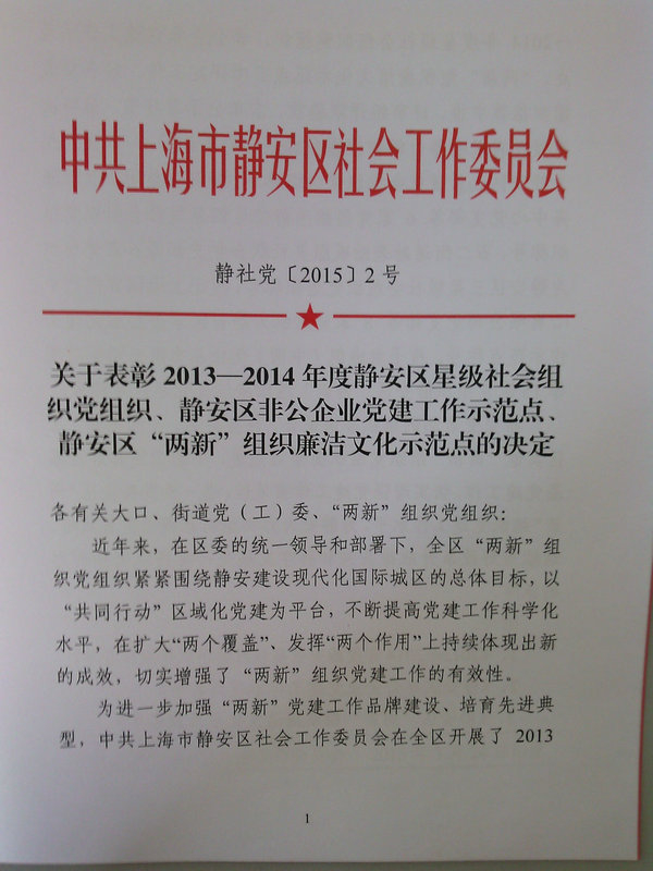 区社联会党总支荣获2013―2014年度静安区五星级社会组织党组织