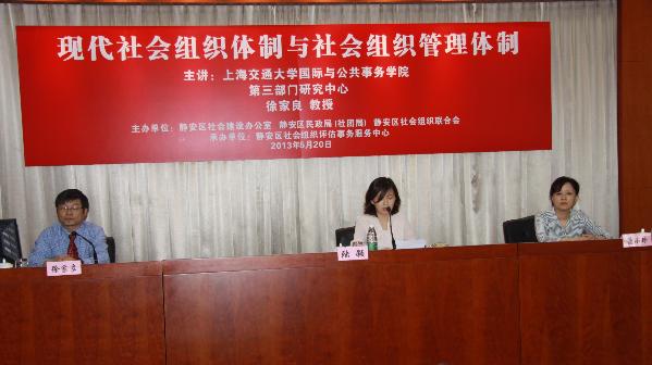 “2013年静安区社会组织业务系列培训”于日前正式启动,年内将开展10次多种内容的业务培训,旨在提升我区社会组织的综合能力。首次培训特邀上海交通大学教授徐家良主讲“现代社会组织体制与社会组织管理体制”。徐教授以风趣、幽默的语言,从理论与实践两方面系统介绍了现代社会组织体制和社会组织管理体制,帮助各社会组织进一步了解现代社会组织体制的内涵、现状及发展趋势。来自全区的160余名社会组织相关负责人参加了本次培训。