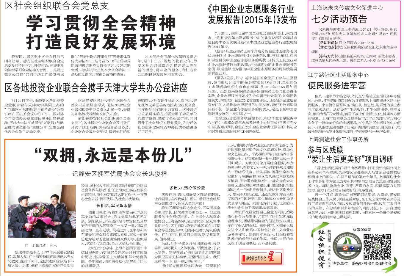 2015年8月社会组织视窗(静安时报2015年8月7日A5版)