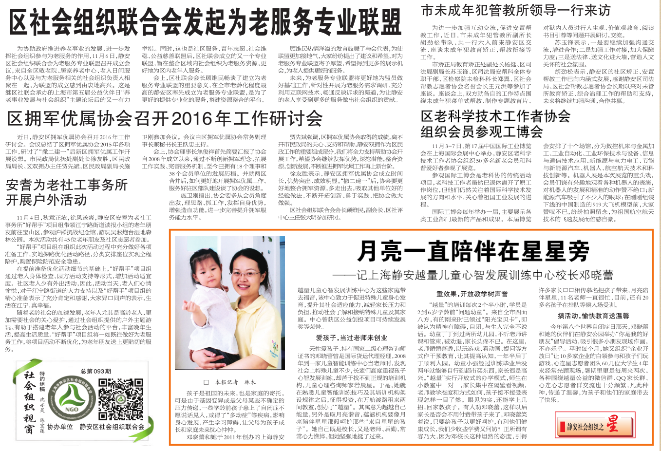 为协助政府推进养老事业发展,进一步发挥社会组织参与为老服务的作用,11月6日,静安区社会组织联合会为老服务专业联盟召开成立会议,来自全区敬老院、居家养老中心、老人日间服务中心以及与为老服务相关的社会组织负责人汇聚一起。这是继区社联会承办的上海市第五届公益伙伴日“养老事业发展与社会组织”主题论坛后的又一有力举措,也是社区服务、青年志愿、社会维稳、公益慈善联盟后区社联会成立的又一个专业联盟,旨在整合区域内社会组织为老服务资源,更好地为静安老年人服务。