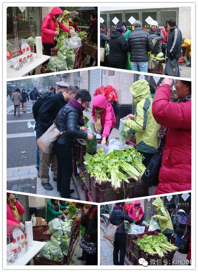 12月11日一早,静安区社会组织联合会党支部牵头的社会组织社区服务专业联盟大篷车准时出动,为我区社会组织青年人才“春芽基金”募集善款的爱心蔬菜义卖活动更是7:30就迎着风寒出摊。上海城市超市国际企业发展有限公司(城市超市)为武定路翰林府邸周边的居民们送来了杭白菜、芥蓝、黄心芹等生蔬。现场还有上海开开制衣公司的羊毛衫销售、上海银发婚介所的老年交友婚介咨询服务等热情加盟。一众“两新”组织志愿者们在寒风中为居民卖力服务的景象,叫人暖心。