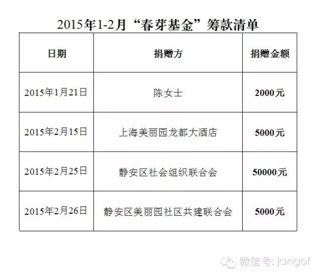 2015年1-2月春芽基金筹款公示