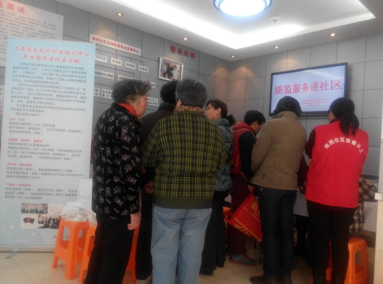 本次活动由上海远东现代职业培训中心校长冯齐{美国宝石研究院(GIA)宝石专家,评估师珠宝首饰(高级)}领衔共四名专业人士坐镇,为社区居民提供了便捷、高效的服务,深受社区居民欢迎。