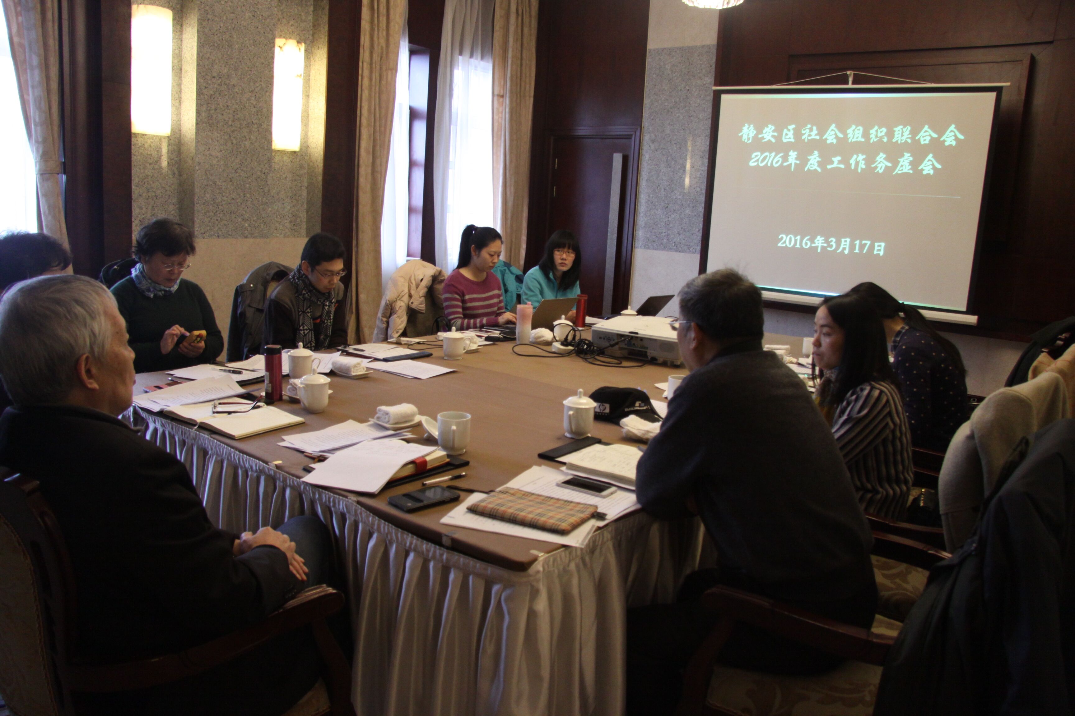 为更好谋划2016年度工作思路,研讨落实各项工作安排,3月17日上午,静安区社会组织联合会召开2016年度工作务虚会,区社联会全体工作人员参加会议,就枢纽党建、信息宣传以及社区服务、为老服务、青年志愿、社会维稳、公益慈善五大联盟等工作内容展开讨论。
