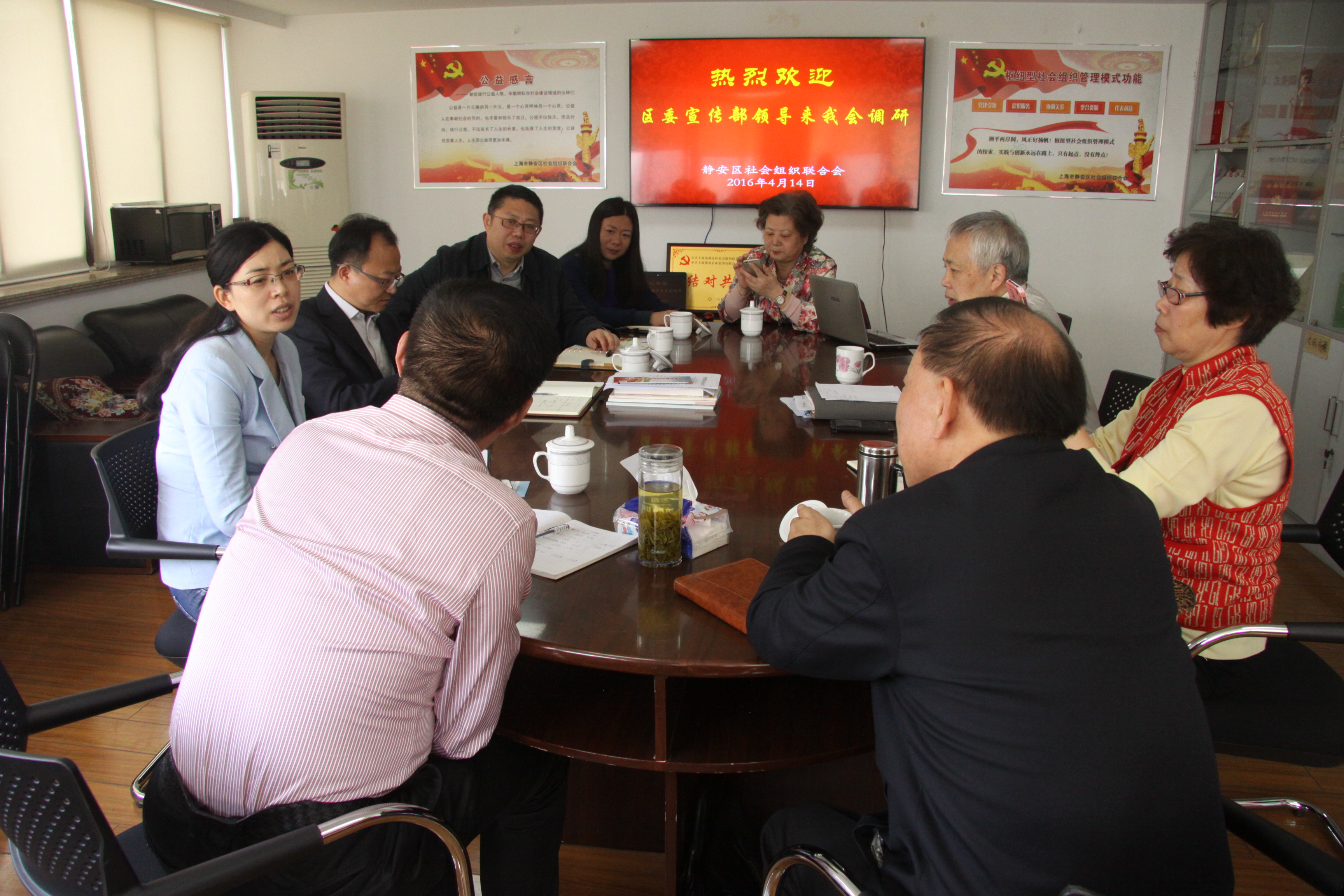 4月14日上午,中共静安区委常委、宣传部部长沈大明一行来到区社会组织联合会调研工作,区委宣传部副部长、区文明办主任马嘉槟等陪同调研。调研座谈会邀请柏万青志愿者工作室负责人柏万青,上海市社会帮教志愿者协会理事长、上海洪智城市小区管理服务中心顾问王元洪,静安区社会帮教志愿者协会会长康志坚作为社会组织领军人物代表共同参加。