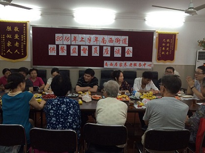 为进一步提升饭菜供给质量,优化服务环境,提高助餐服务水平,充分发挥老年助餐监督员对助餐工作的促进作用,7月15日,静安区南京西路街道居家养老服务中心在联华乐龄家园召开供餐单位和助餐监督员座谈会,征求助餐监督员对供餐单位饭菜质量和服务质量及养老中心在管理等方面的意见和建议,来自社区的助餐监督员和供餐单位及街道有关部门领导26人参加了座谈会。