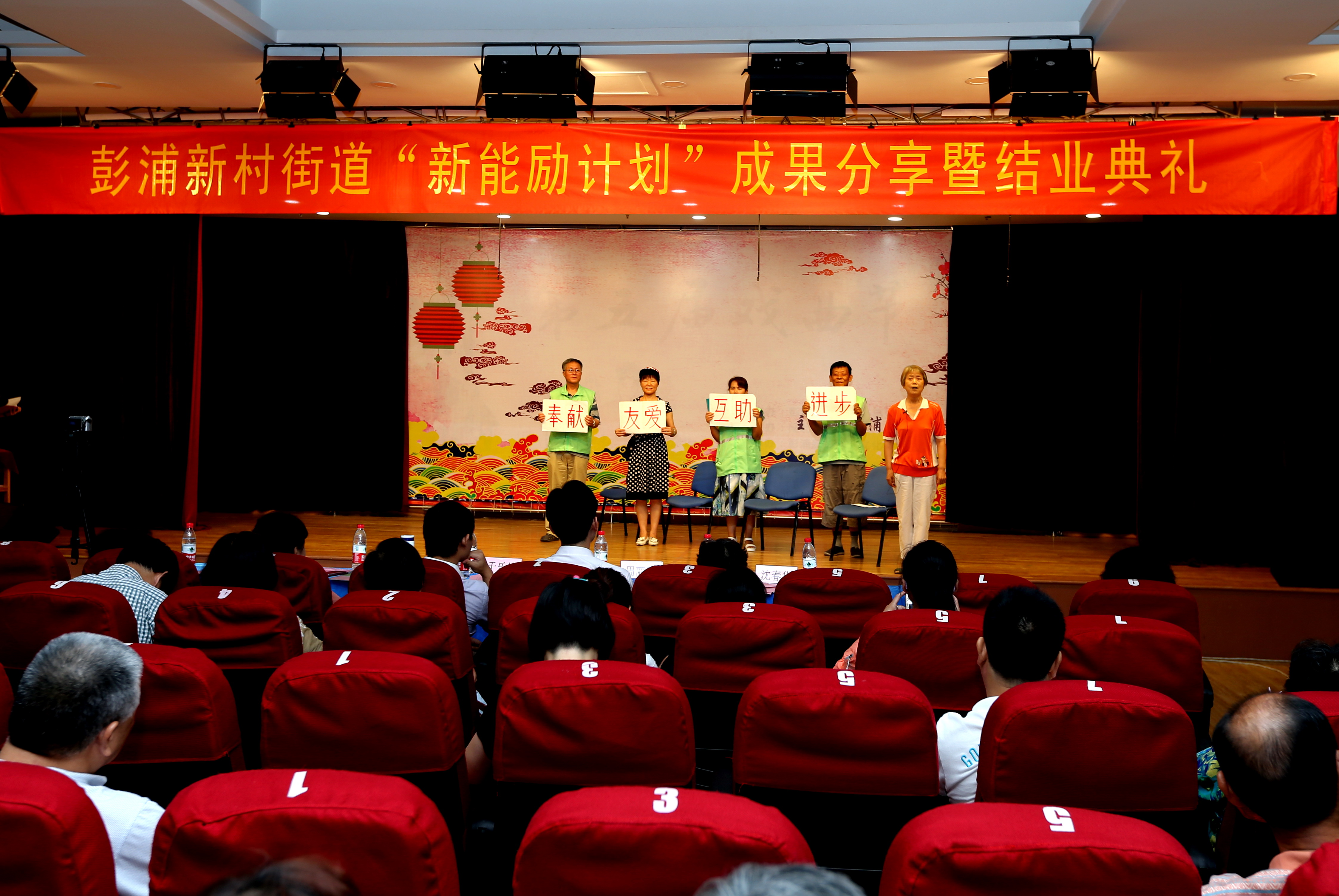 “新能励计划”项目作为社区志愿者培训项目,为期一年的项目活动已经接近尾声。7月13日,上海市欣扬社工师事务所在彭浦新村街道社区文化活动中心召开了“新能励计划”项目成果分享暨结业典礼。会上表彰了4个协同合作奖,3个优秀块组,25名优秀学员,颁发了“乐淘义卖公益集市”捐赠证书,并对志愿者能力提升进行了肯定和激励。