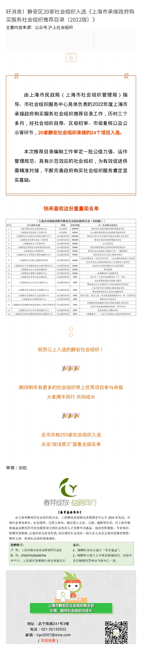 好消息!静安区20家社会组织入选《上海市承接政府购买服务社会组织推荐目录(2022版)》