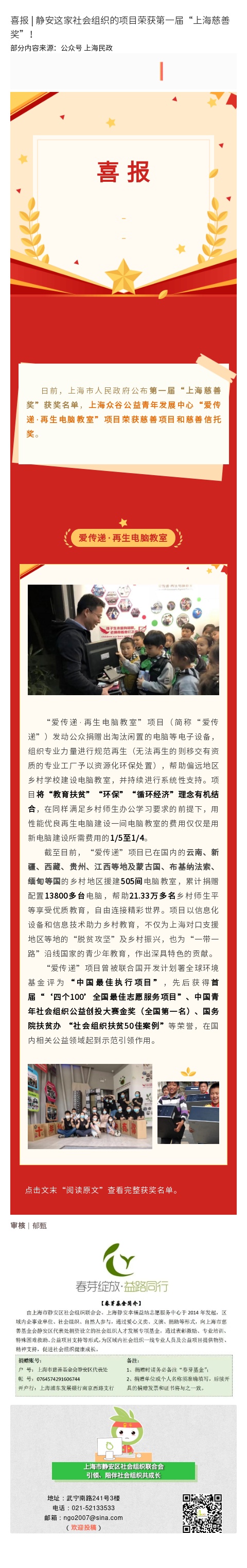 喜报 | 静安这家社会组织的项目荣获第一届“上海慈善奖”!