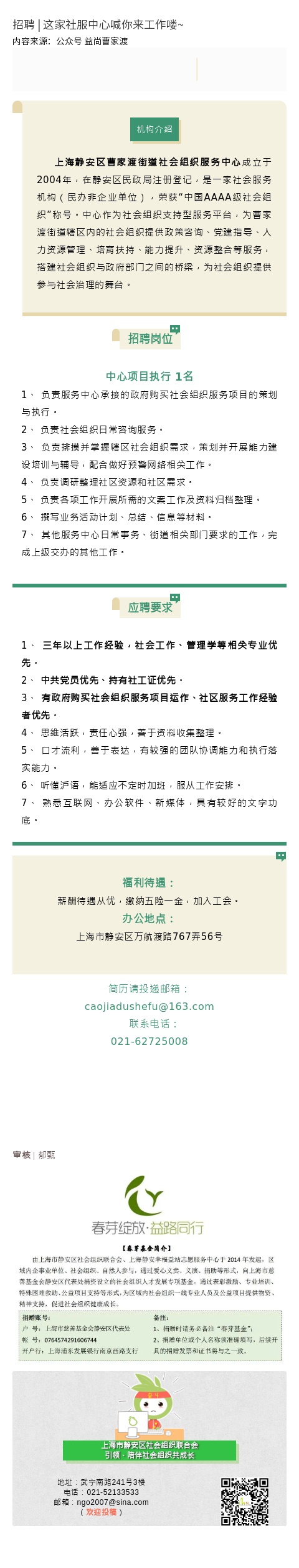 招聘 | 这家社服中心喊你来工作喽~