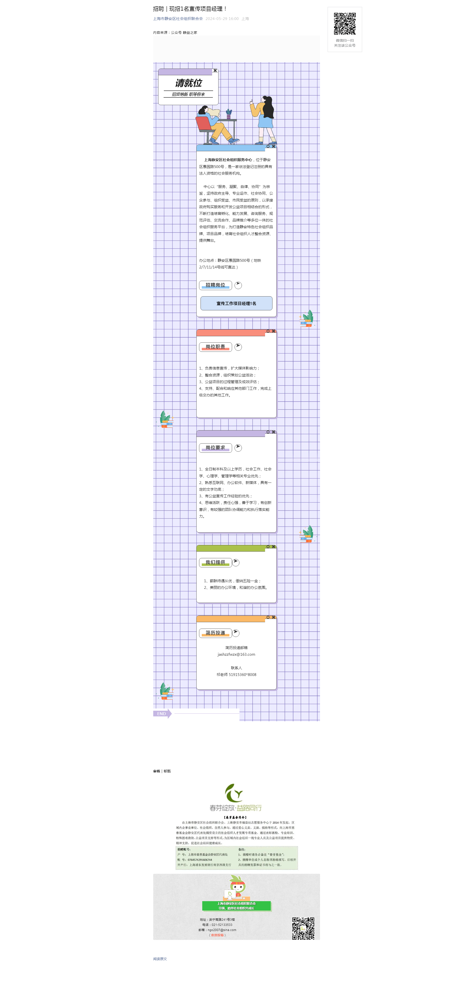 招聘 | 现招1名宣传项目经理!