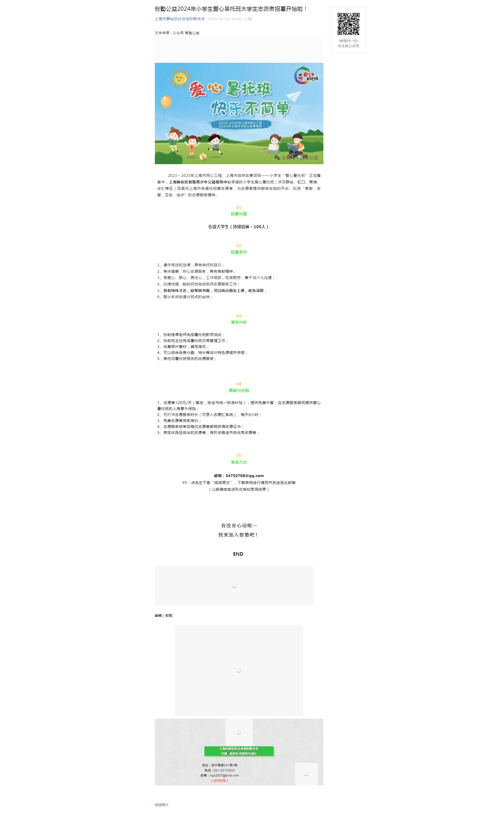 智塾公益2024年小学生爱心暑托班大学生志愿者招募开始啦!