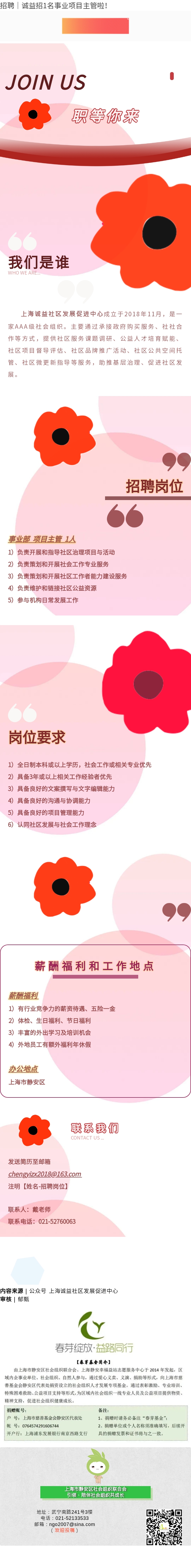 【招聘启事】招聘|诚益招1名事业项目主管啦!