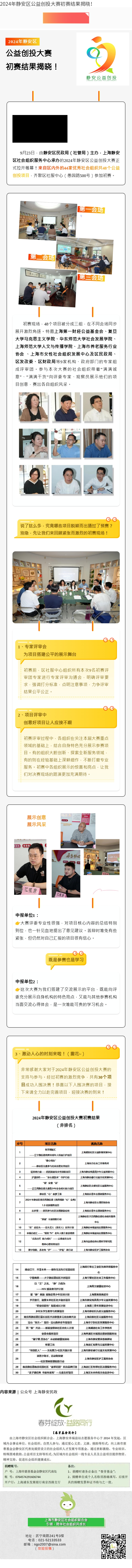 【组织动态】2024年静安区公益创投大赛初赛结果揭晓!