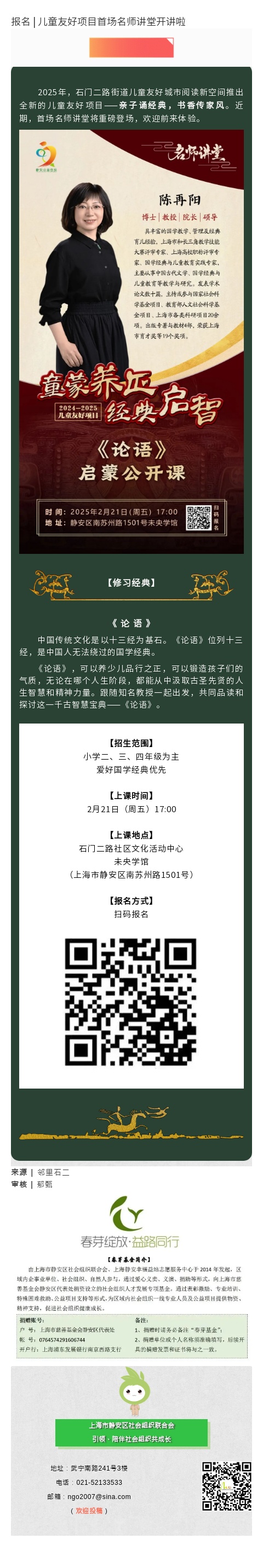 报名 | 儿童友好项目首场名师讲堂开讲啦