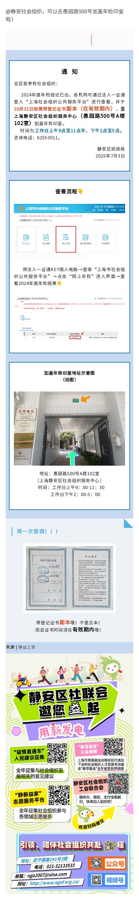 @8458万彩网组织,可以去愚园路500号加盖年检印鉴啦!