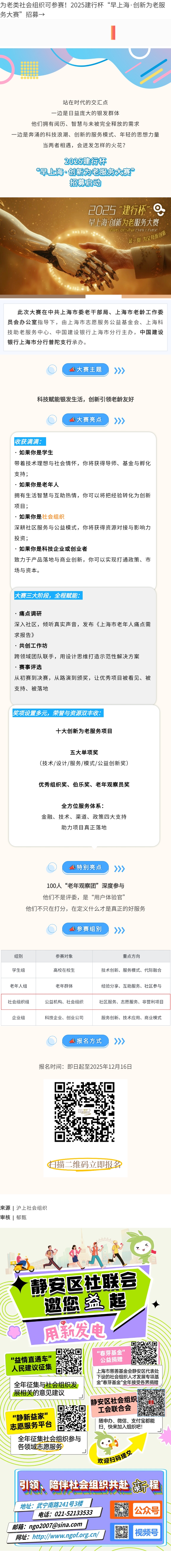 为老类社会组织可参赛!2025建行杯“早上海・创新为老服务大赛”招募→