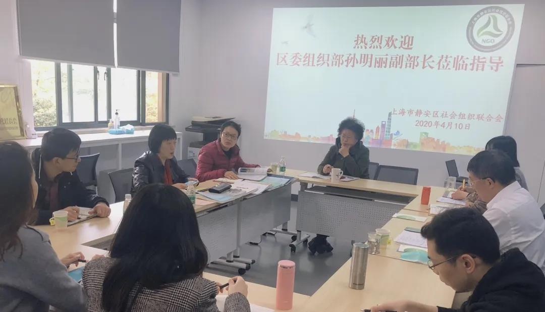 4月10日上午,静安区委组织部副部长孙明丽赴静安区社会组织联合会,调研枢纽型社会组织党建工作近况。区委组织部组织二科科长蒋燕、副科长米长亮陪同调研。