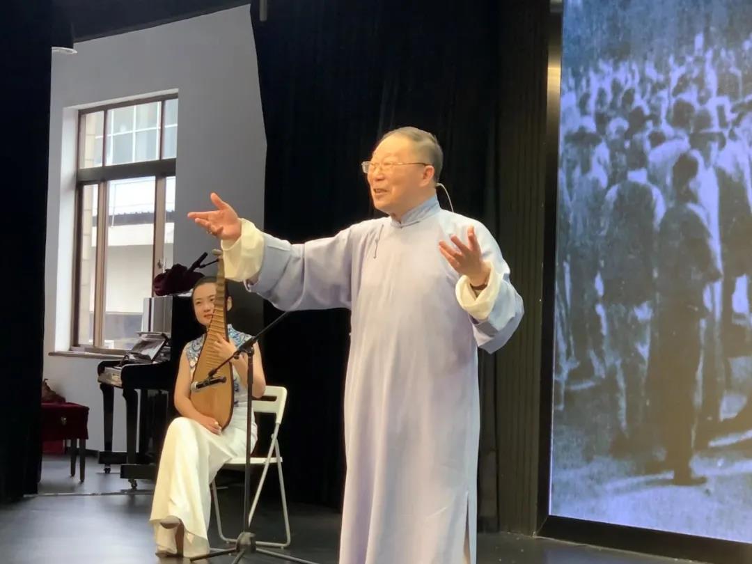 此次评话情景剧由评话表演艺术家朱庆涛,著名评弹表演艺术家刘敏等人共同演绎。通过评话情景剧的形式来诉说发生在北站的故事,灵活运用载体和形式,结合历史背景,以实景表演、情景再现的方式,演绎抗战历史,缅怀先烈感人事迹,牢记中华儿女的使命担当。