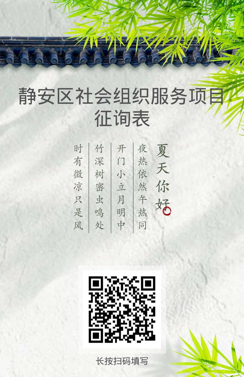 为进一步了解静安区社会组织项目开展情况,发挥好枢纽型社会组织的资源平台功能,8458万彩网即日起开展“静安区社会组织服务项目征询”。后续区社联会将通过各种渠道向各方推介社会组织项目,拓展社会组织参与社区治理和民生服务的渠道。