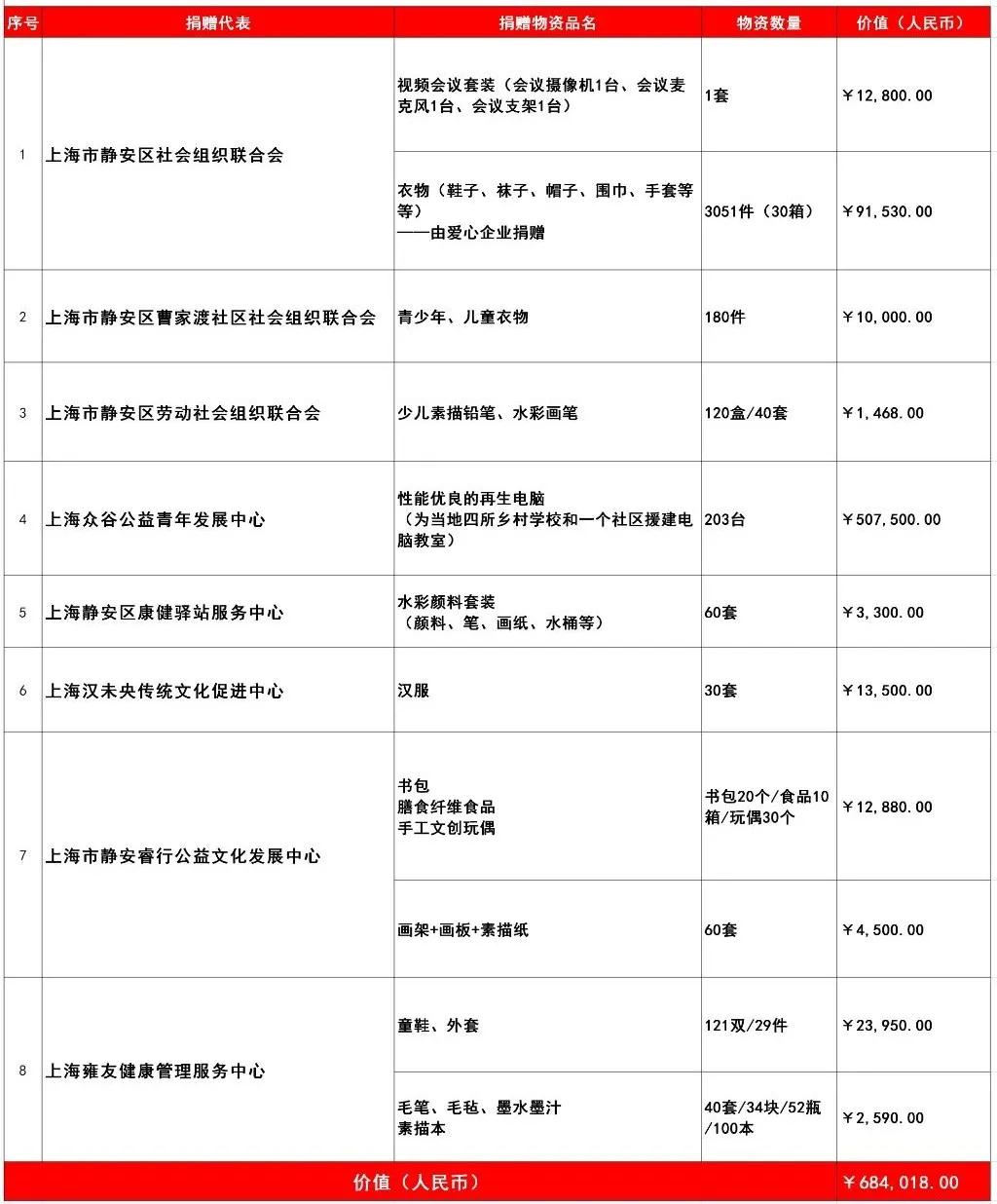 捐赠物资清单(排名不分先后)