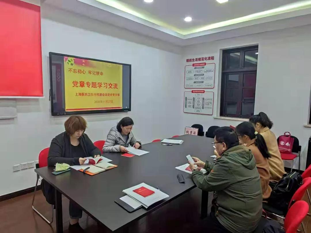 2020年11月27日晚,上海医药卫生行风建设促进会党支部在静安寺街道党群服务中心组织生活室召开党员大会暨党章专题学习交流,支部党员、积极分子参加了此次会议。
