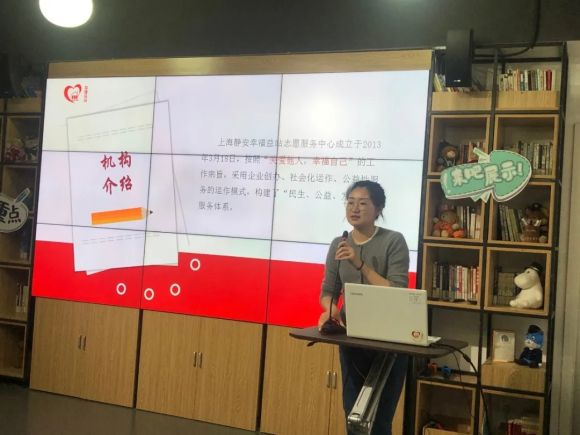 (幸福益站副理事长蔡梦娣介绍本机构规范化建设)