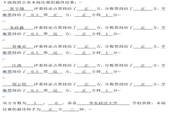 获胜方:华东政法大学