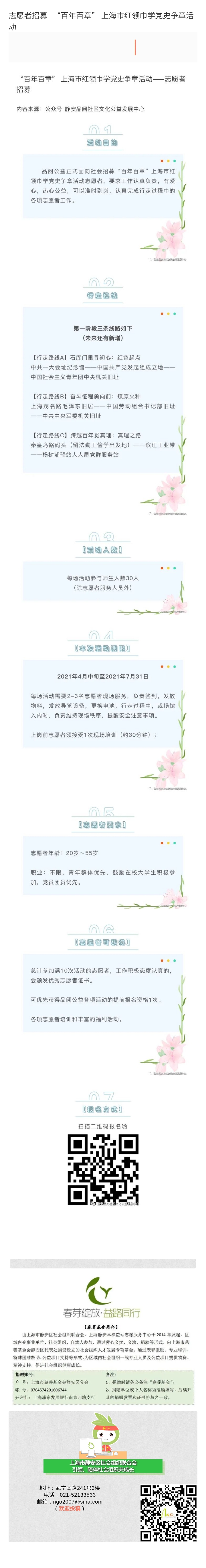 【组织动态】志愿者招募 | “百年百章” 上海市红领巾学党史争章活动