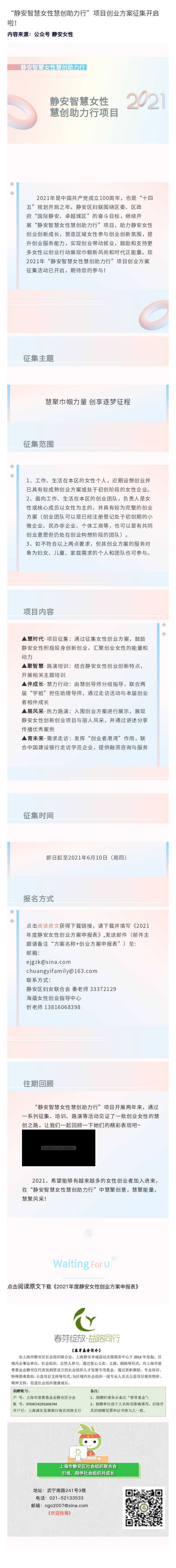 【组织动态】“静安智慧女性慧创助力行”项目创业方案征集开启啦!