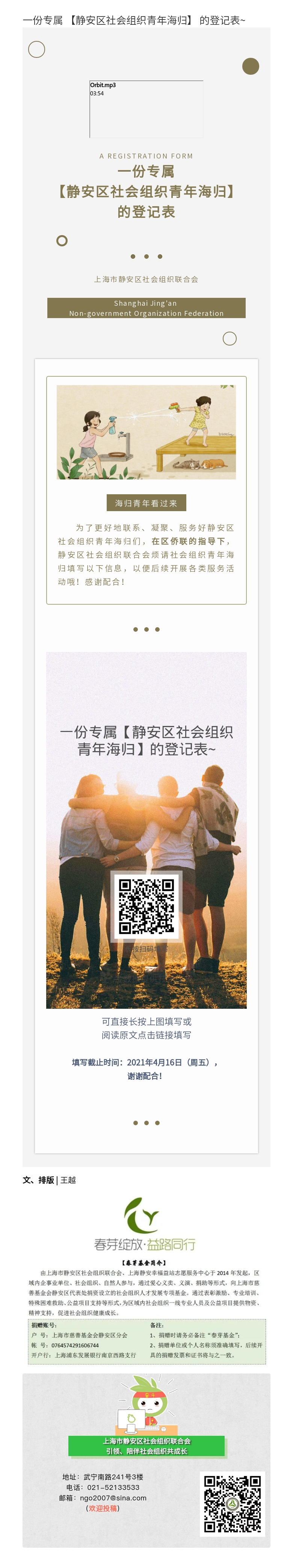 【枢纽快讯】一份专属 【静安区社会组织青年海归】 的登记表~