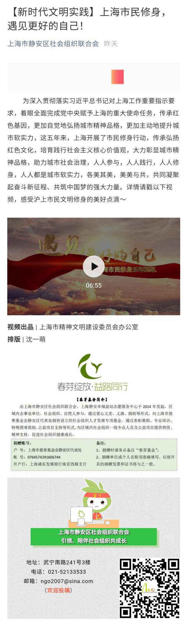 【信息动态】【新时代文明实践】上海市民修身,遇见更好的自己!