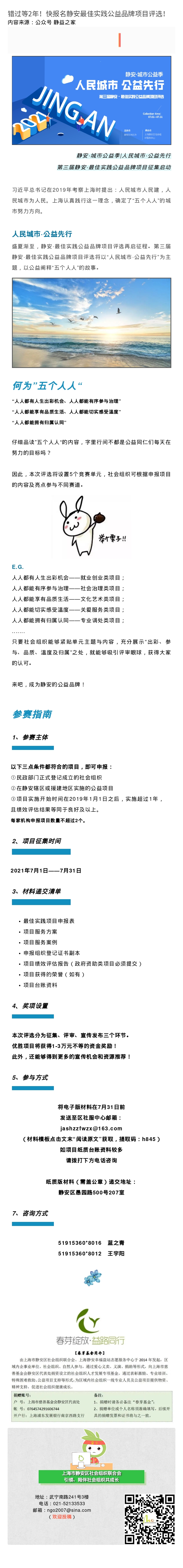 错过等2年!快报名静安最佳实践公益品牌项目评选!