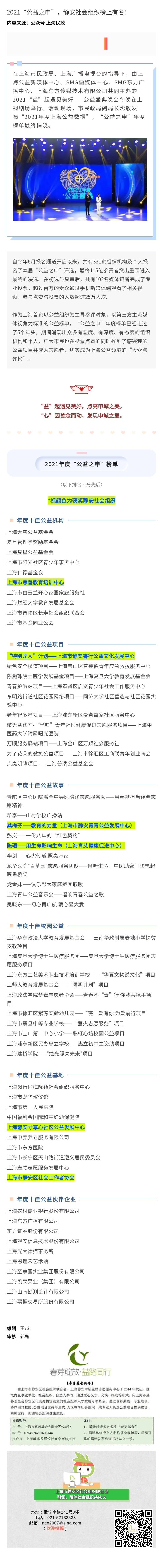 上海市民政局发布:2021年度社会组