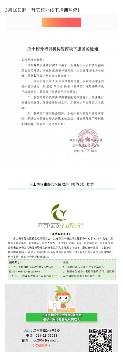 3月10日起,静安校外线下培训暂停!