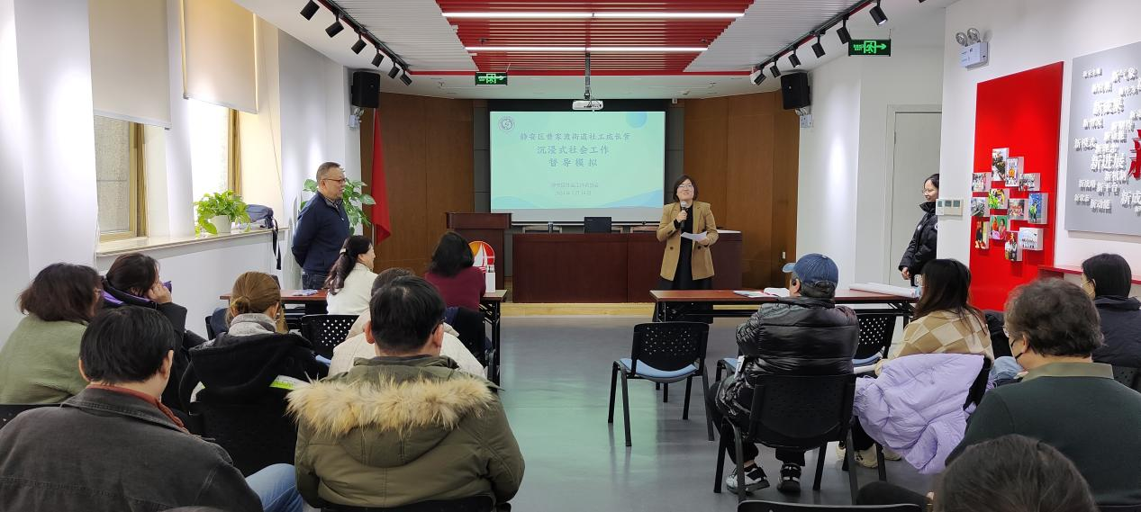 为了让社区工作者体验、了解社会工作专业督导,2024年1月16日下午,静安区社工协会联合曹家渡街道自治办组织辖区内20名骨干社区工作者参与社会工作督导情景模拟,以本社区案例为模拟督导场景,由资深社会工作者现场指导。
