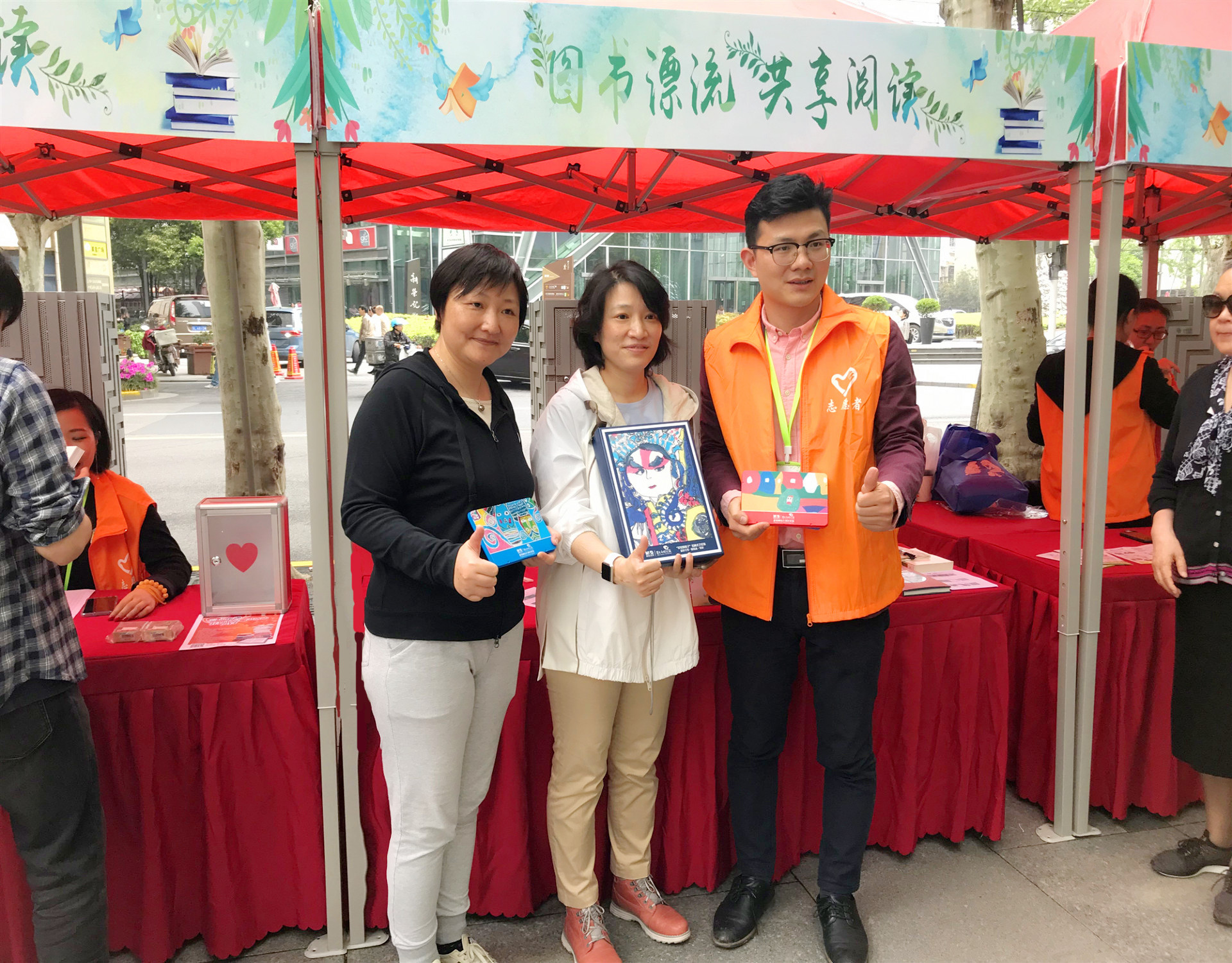 因而在此次世界读书日到来之际,由静安区南京西路街道党工委、办事处主办,上海市静安区南京西路社区社会组织联合会、微笑明天慈善基金会、上海市静安区南京西路街道图书馆联合承办的一场主题为“图书漂流,共享阅读”的图书漂流公益活动在南京西路青海路路口如期举行。南京西路街道办事处副主任邵皑及相关领导、静安区社联会会长顾维民和相关负责人拨冗出席本次公益活动。
