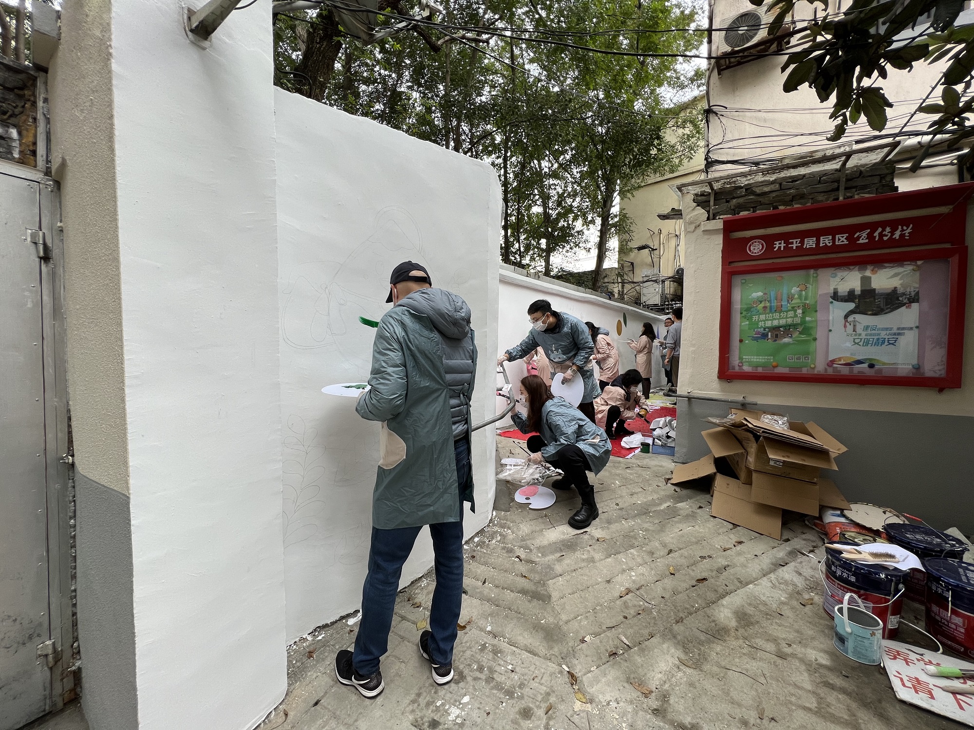 在南京西路街道升平街的尽头有一条不起眼的小弄堂,但它却是居住在附近的居民外出、前往医院的必经之路。在岁月的洗礼下,弄堂的墙面已经斑驳、墙皮脱落,十分影响美观。为了改变这一面貌,进一步增加居民的幸福感和获得感,南京西路街道办事处于11月初已着手开始对墙面进行整修翻新。经过南西社联会的平台对接,我们与多特瑞志愿者团队一拍即合,共同协商方案并参与到此次的“社区微更新”中,并增加墙面美化内容,为这条弄堂增添属于新时代的新色彩。