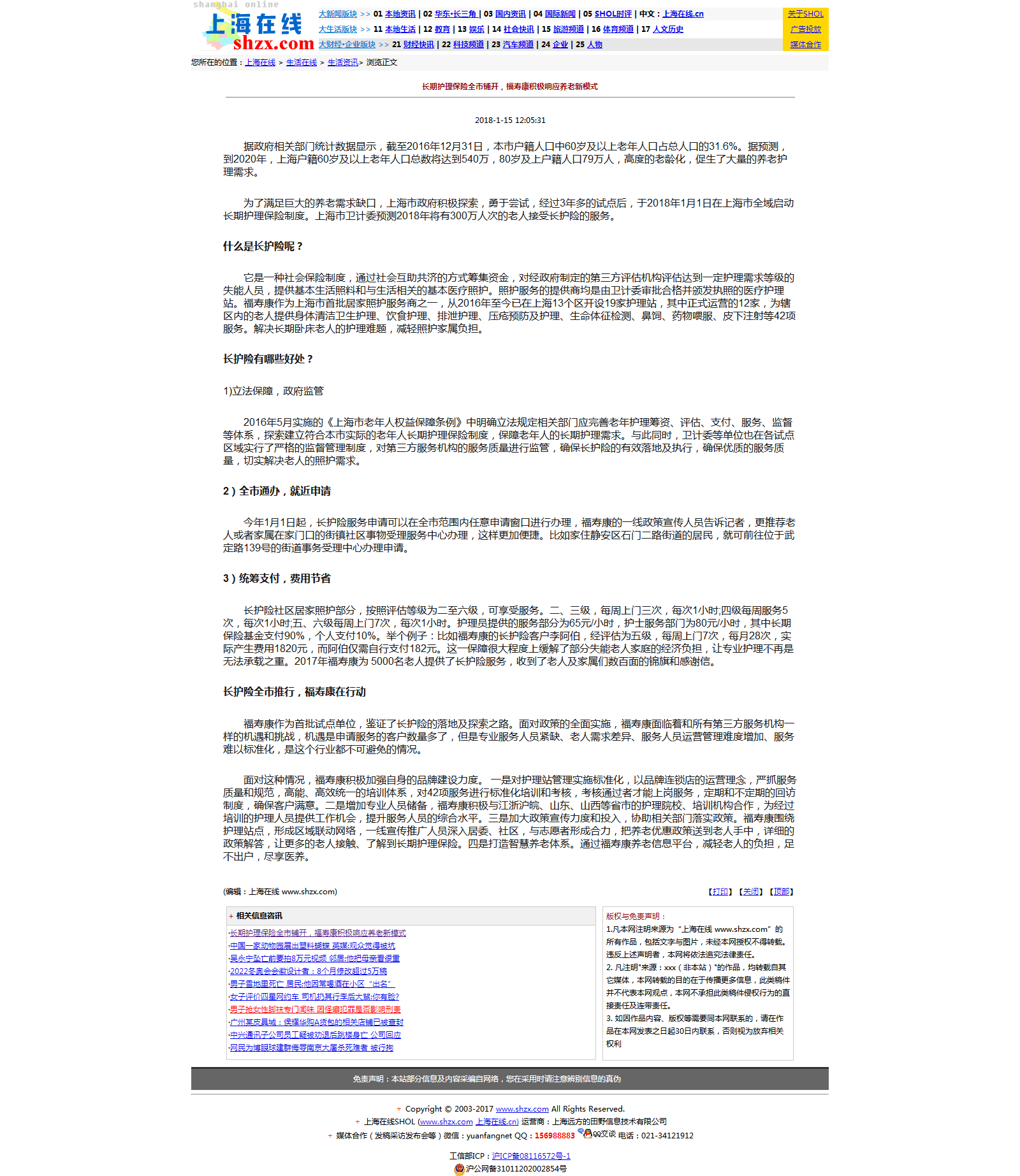 长期护理保险全市铺开,福寿康积极响应养老新模式