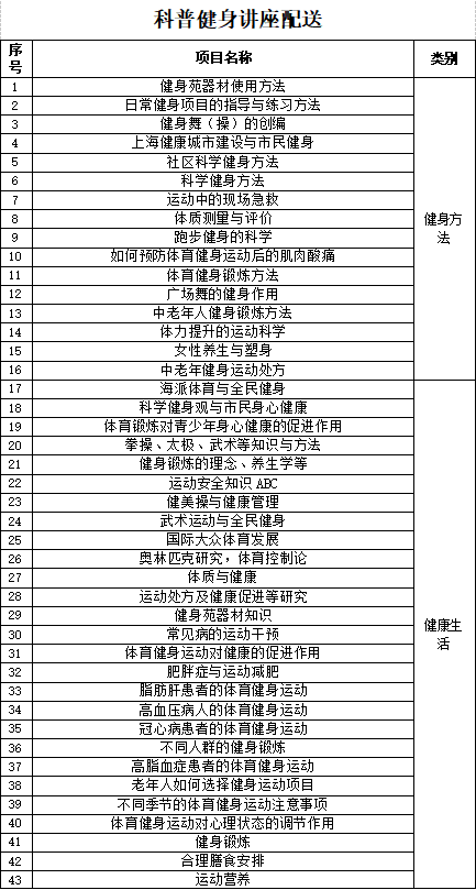 社区体育配送将继续把多项健身技能培训和健康大讲坛送到家门口,不要错过哦!