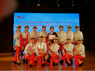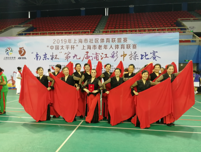 9月26日参加2019年上海市社区体育联盟赛“中国太平杯”上海市老年人体育联赛 第九届浦江彩巾操邀请赛一等奖。