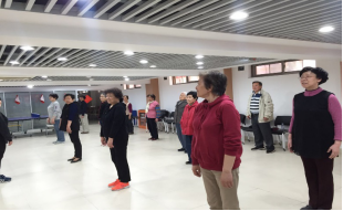 太极健骨健身操是大众健美操和有氧舞蹈的简称,有氧健身操是配合音乐有节奏地舞动的有氧运动。威海健康自管小组、陕南健康自管小组、古柏健康自管小组、华业健康自管小组、重华健康自管小组、延中健康自管小组都安排在巨鹿路695弄7号―南西市民健身中心一间宽敞的教室内。居民们在老师的指导下,排练有氧健身操舞。“一二三四,手臂前后摆动……”欢快的旋律回荡在教室里。