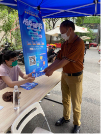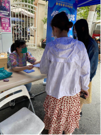 此次公益配送服务涵盖的项目有游泳、舞蹈、健身、轮滑、空手道、乒乓等,党群服务中心的志愿者们在炎热的天气对白领们进行现场指导,扫一扫二维码,就能抢到免费优惠券,抵扣到健身活动中,使广大健身爱好者直接得到实惠。让我们来看看配送服务现场的照片吧!