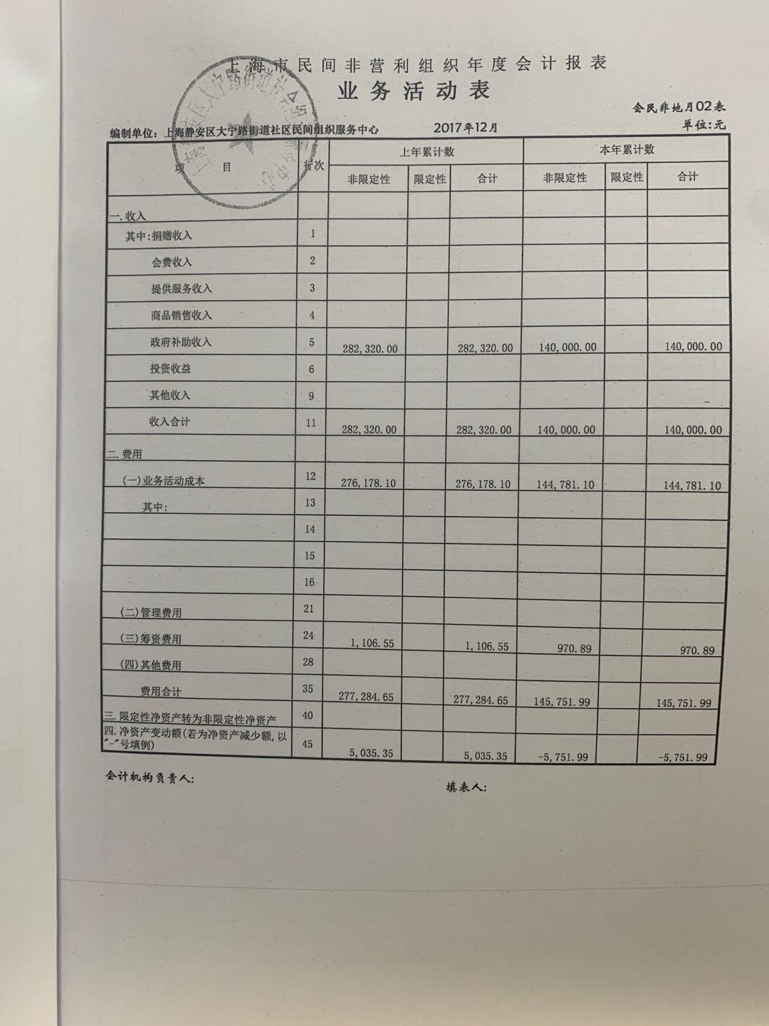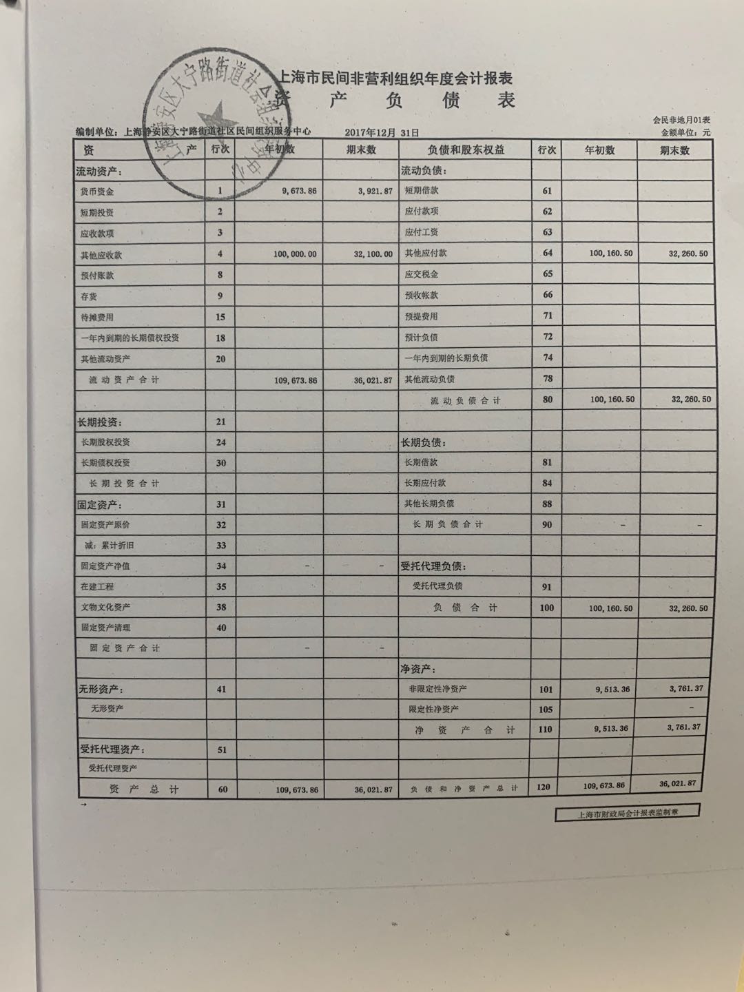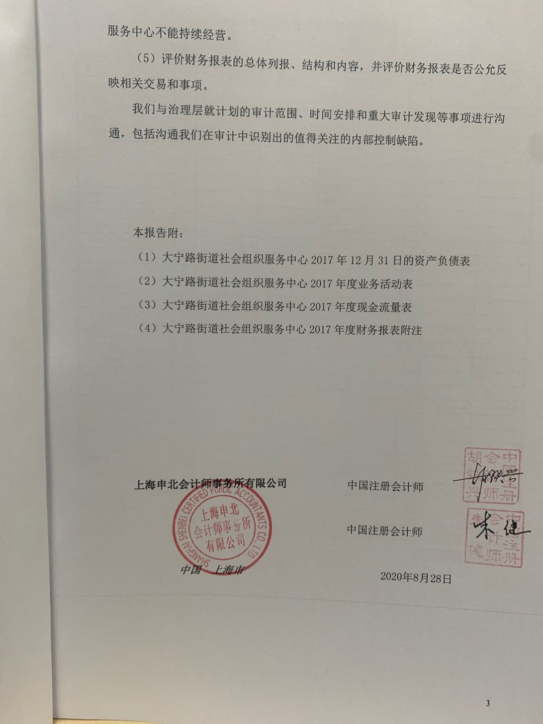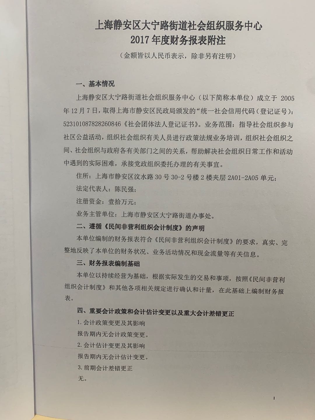 上海静安区大宁路街道社会组织服务中心 2017年审计报告