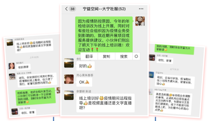 通知一经发出,就收到了大家的热情回复。目前社会组织已陆续复工,虽说很多线下工作无法展开,但是趁着这段时间充充电、整理规范一下机构内部治理是个不错的选择。宁益online也会密切关注大家的需求,开展相应的专题培训。