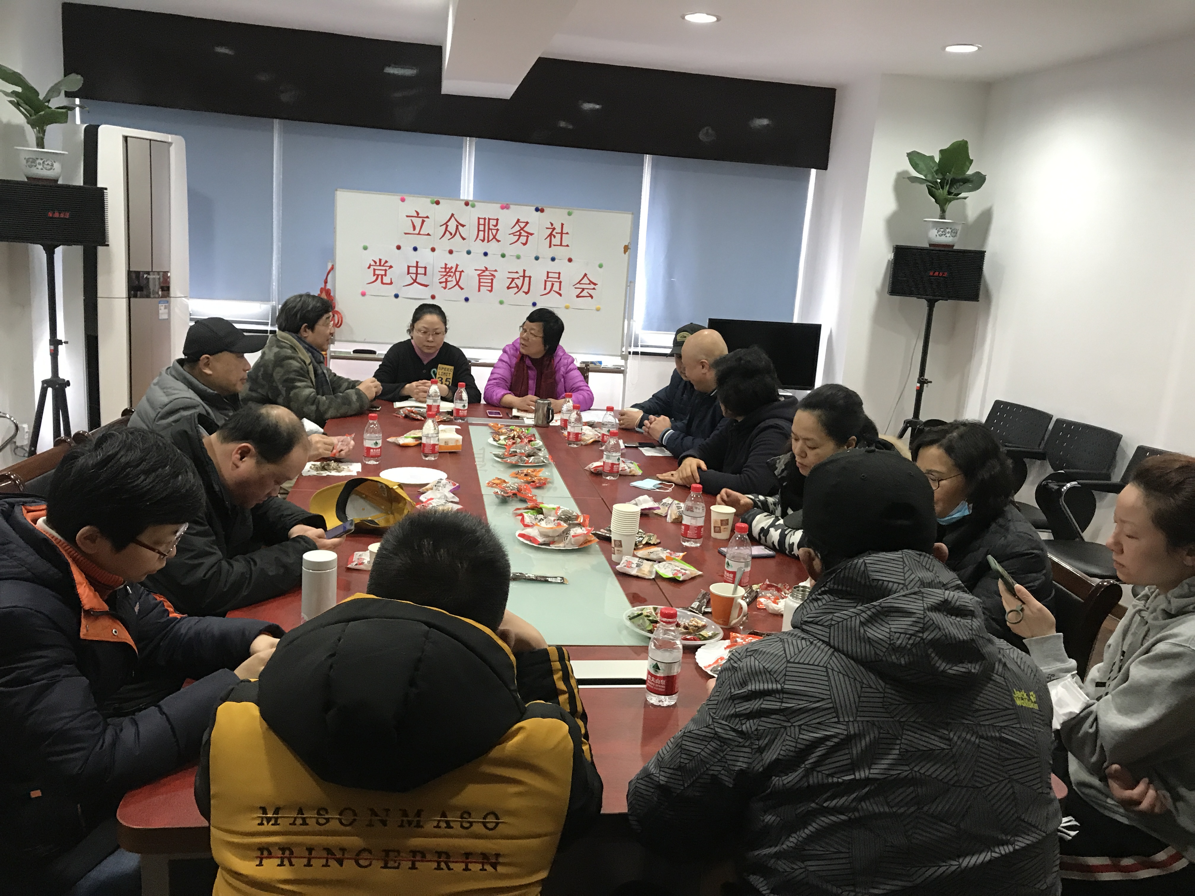 2021年2月24日 党史宣传教育座谈动员会 发布时间:2021/2/24 11:03:02 浏览次数:379 2月24日上午在立众服务社会议室假喜迎元宵佳节的集体团拜活动中,进行了“党史宣传教育座谈动员会”。大家共同学习习总书记给上海市新四军历史研究会的百岁老战士的回信。服务社要求大家在家庭中加强对子女进行革命传统教育,同时将围绕今年庆祝中国共产党成立100周年主题开展活动,精心组织一系列学党史教育活动,要不忘初心,牢记使命,传承红色基因,坚定理想信念,更好地做好各项工作。