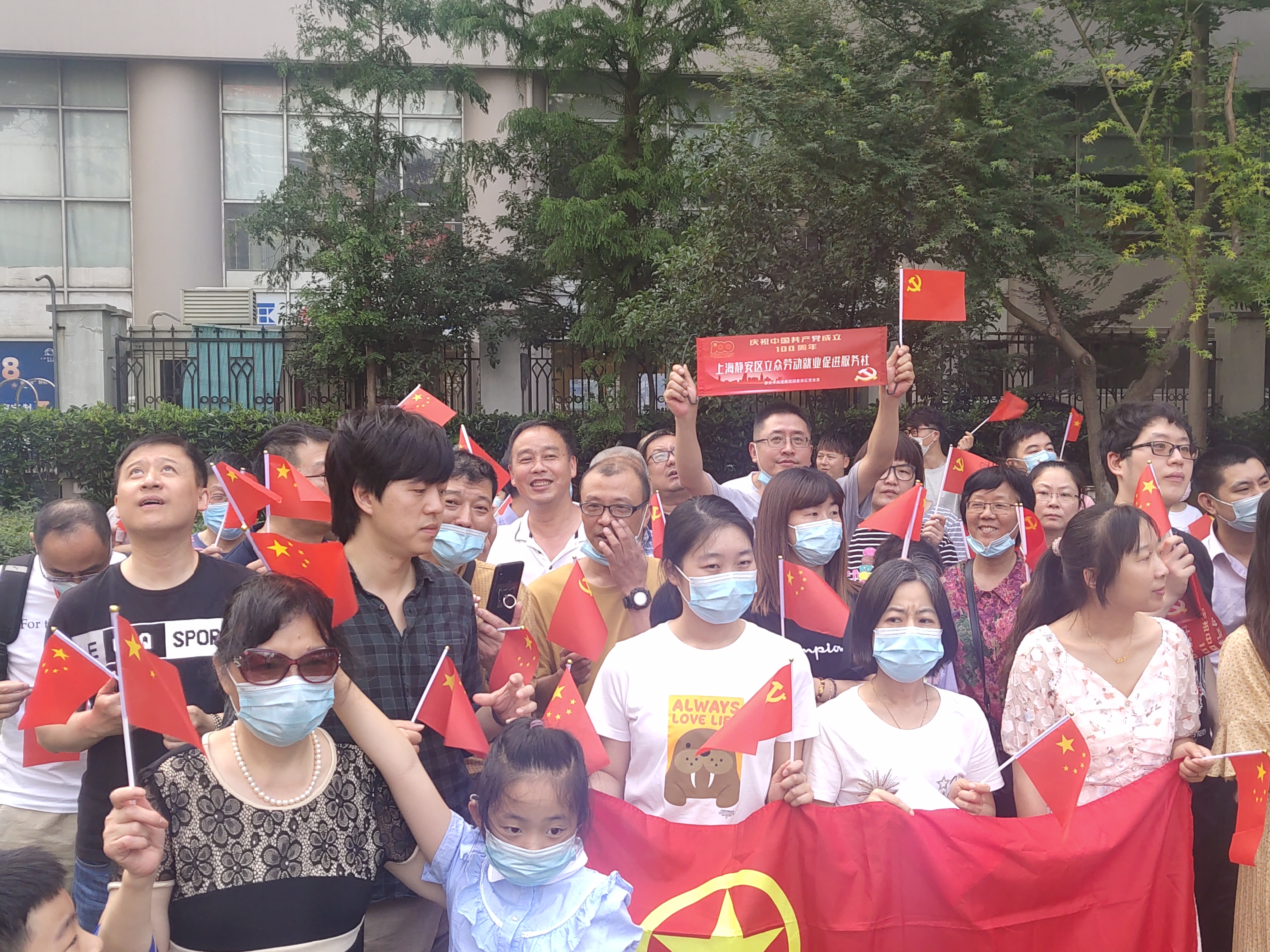 6月24日,上海静安区立众劳动就业促进服务社组织了近30人参与静安寺街道美丽园社区党总支组织的“庆祝中国共产党成立100周年”大型快闪活动。